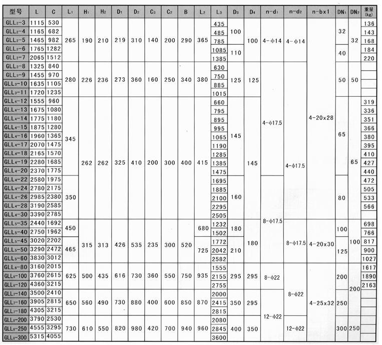 | GLL | 4~7 | 0.631.0 | 1:1.5左右 | ≥300 | ||||